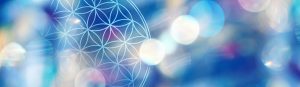 Banner Blume des Lebens in kosmischem Lichterfeld